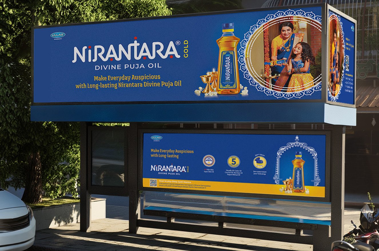For Nirantara, devotion couldn’t stop at just how the pack looked - it had to be heard too. We collaborated with renowned devotional singer Shri Vijay Prakash to render the Deepa Jyotir mantra especially for this brand. A QR code on the back of the pack lets customers instantly scan and play the mantra every time they light the lamp. In that moment, the bottle stops being just a container of oil and becomes a small, reliable companion for daily prayer.